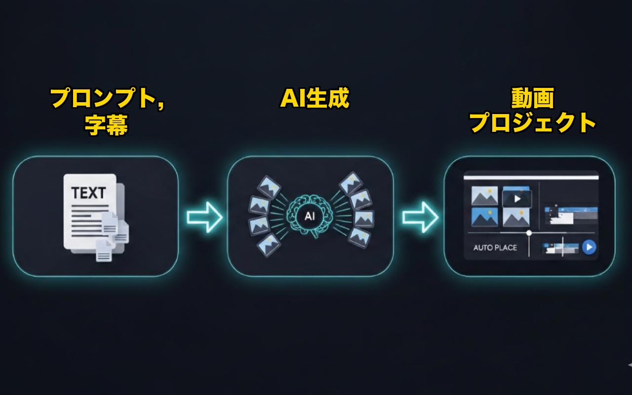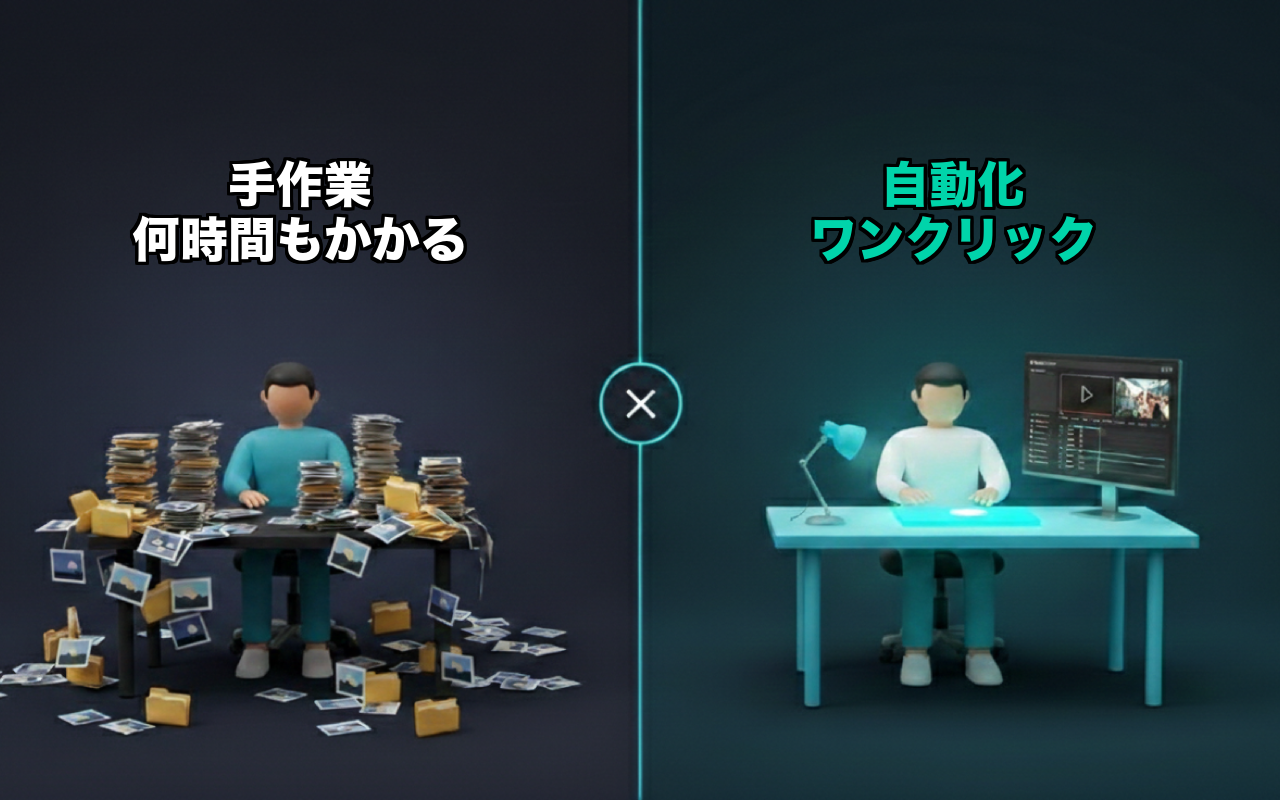 AIスライドショー/ナレーション動画制作における画像→タイムラインの繰り返し作業を自動化。