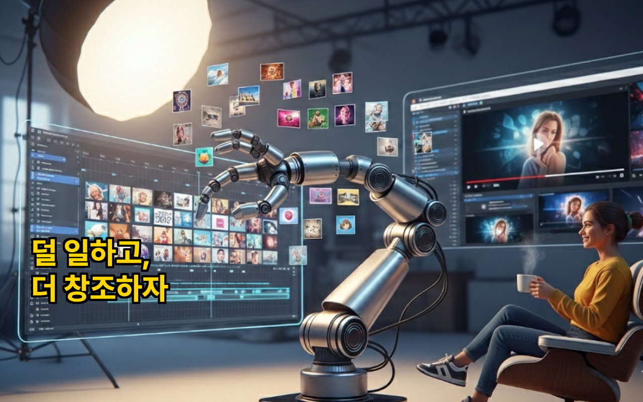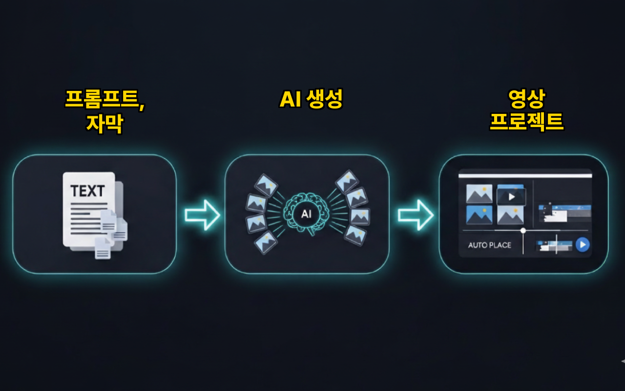 AI 슬라이드쇼/나레이션 영상 제작 시 이미지→타임라인 반복 작업을 자동화.
